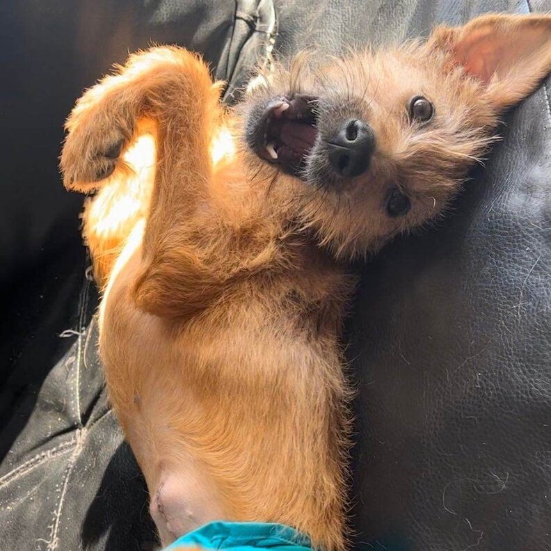 Roxanne was initially shocked to find a honey-colored puppy in the bag, then overjoyed when she realized the sweet girl was still breathing.