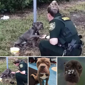 A deeply moving moment—an abandoned dog, tied to a post in an empty field, cried out desperately for help. After being rescued by police, it lowered its head in gratitude, touching the hearts of everyone who witnessed i -ltbl